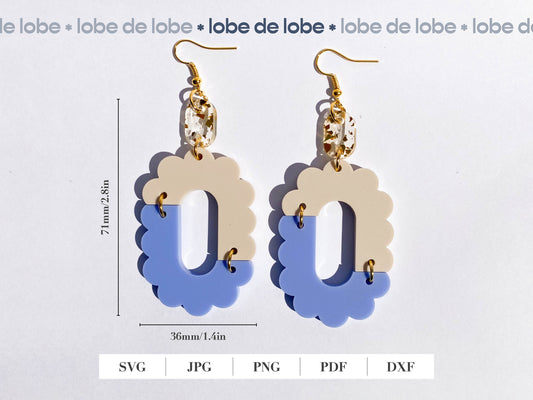 Squiggle Oval Scallop, Asymmetric Laser Cut Earrings Digital Download