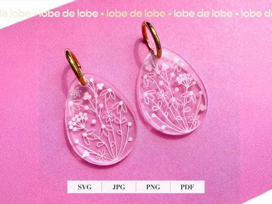 Spring Floral Clear Acrylic Bundle Laser Engraved Earrings Digital Download
