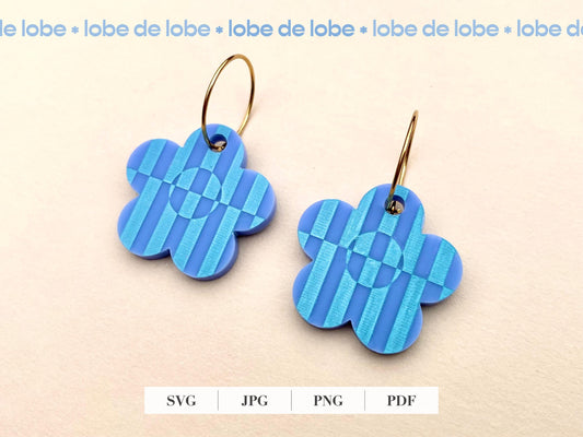 Striped Spring Flower Laser Engraved Earrings Digital Download
