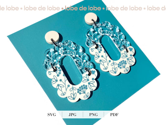 Spring Floral Boho Scallop Laser Engraved Earrings Digital Download
