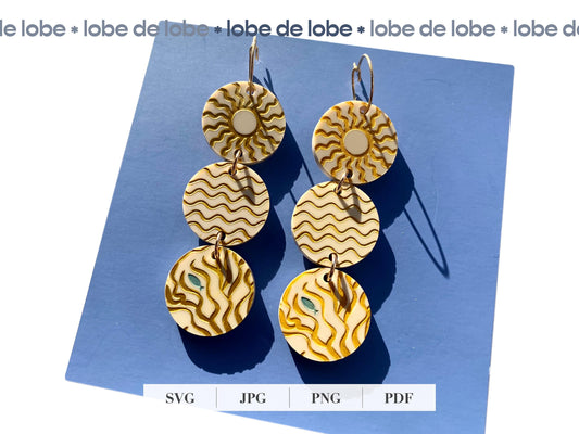 Sun and Ocean Abstract Laser Engraved Earrings Digital Download