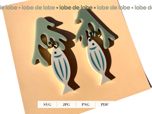 Sardine Fish Coral Laser Engraved Earrings Digital Download