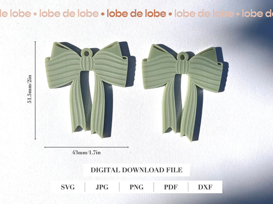 Striped Ribbon Bow Laser Engraved Earrings Digital Download