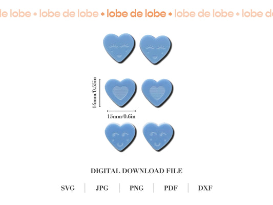 Cute Love Heart Studs Laser Engraved Earrings Digital Download