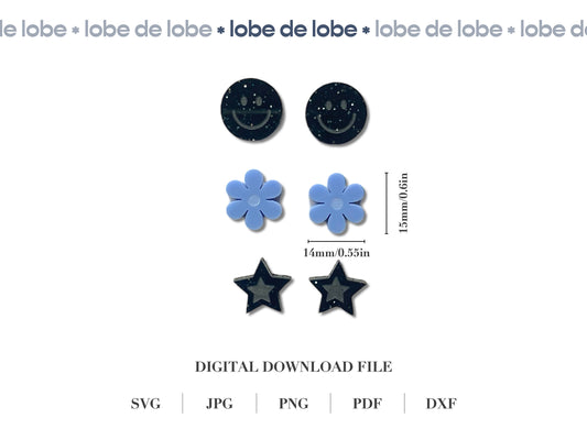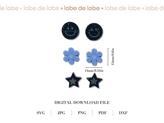 Laser Cut Design Files Cute Stud Bundle Sweet flower Smiley Face Star earring template svg Files